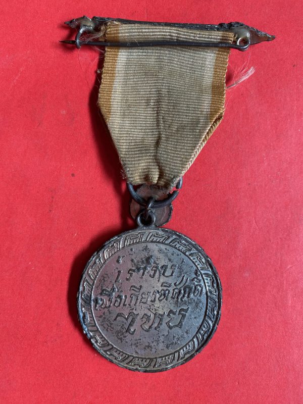 เหรียญชัยสมรภูมิสงครามเอเชียบูรพา พ.ศ.2484 สมเด็จพระนเรศวรมหาราช-กู้ชาติ (เนื้อตระกั่ว)สวยคมชัดสมบูรณ์มากๆพร้อมแพรแถบ