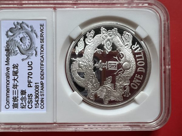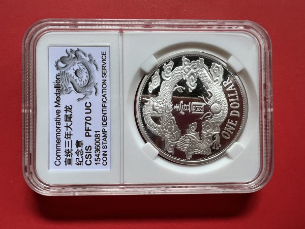 เหรียญต่างประเทศเนื้อเงินขัดเงา ประเทศจีนออกเกรดได้สูงสุด PF 70UC ตรามังกร
