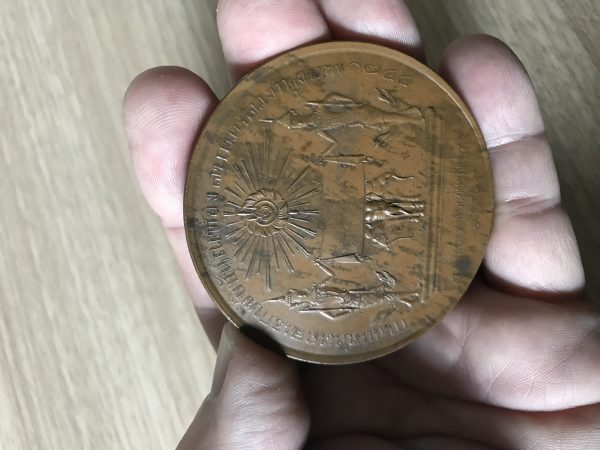 เหรียญที่ระลึก จุฬาลงกรณ์ บรมราชาธิราช สว่างวัฒนา หรือเหรียญเนชั่นแนลเอกซิบิชั่น ณ.สนามหลวง ปี 1244 เนื้อทองแเดง สมัยร.5