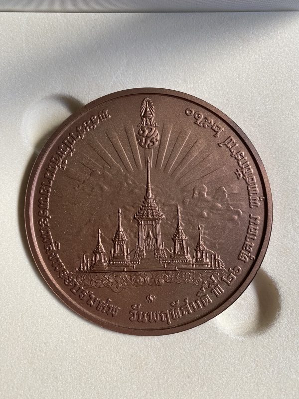 เหรียญที่ระลืกพระราชพิธีถวายพระเพลิงพระบรมศพ พฤหัสที่ 26 ตุลาคม 2560 องค์ ร.9 เนื้อทองแดงรมดำพ่นทราย เส้นผ่าศูนย์ 7 ซม.