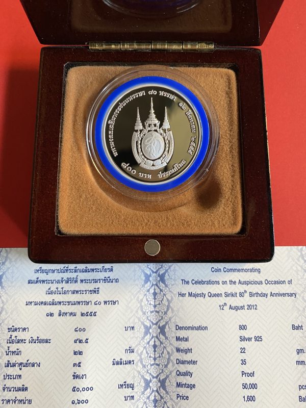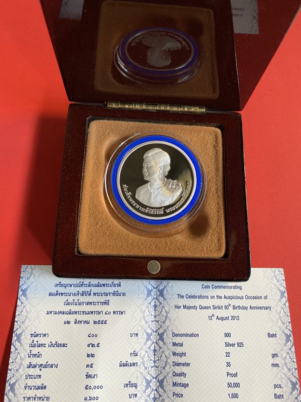 เหรียญพระพันปีหลวง มหามงคลเฉลิมพระชนมพรรษา 80 พรรษา 12 สิงหาคม 2555 เนื้อเงินขัดเงา 800 สวยงามพร้อมกล่องใบ