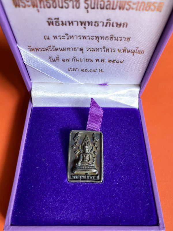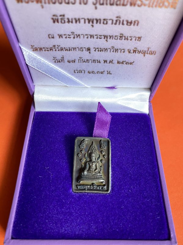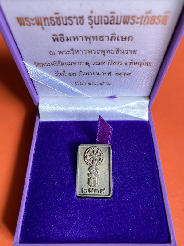 เหรียญพระพุทธชินราชเนื้อเงินรูปสี่เหลี่ยม รุ่น เฉลิมพระเกียรติ พิธีมหาพุทธาภิเษก ณ.วัดพระศรีมหาธาต วันที่ 17 กันยายน 2539 กล่องเดิม