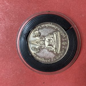 เหรียญเนื้อเงินขัดเงาขอบเฟือง ด้านหน้ารูปพระพุทธชินราช ส่วนด้านหลังเป็นรูปเทพ ไต้ฮงโจวซือ ปลุกเสกโดย มูลนิธิประสาทบุญสถาน