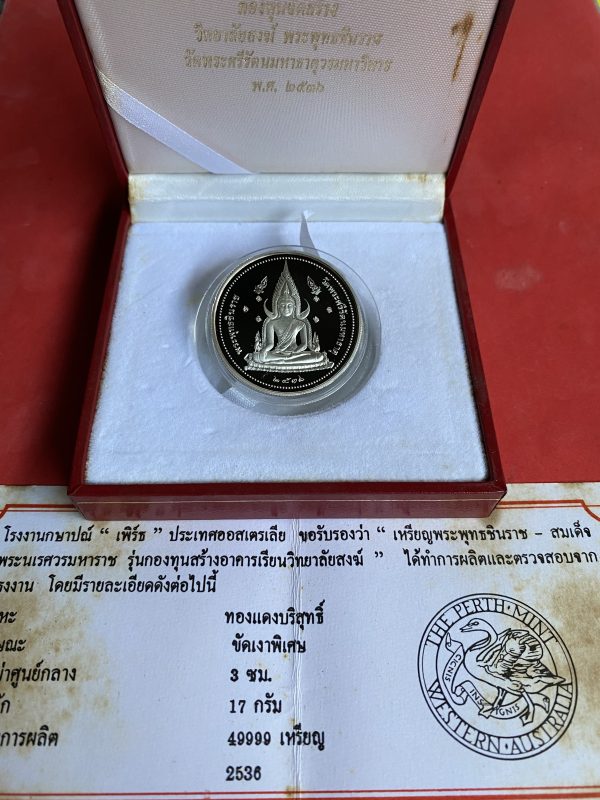 เหรียญพระพุทธชินราช – สมเด็จพระนเรศวรมหาราช วัดพระศรีมหาธาตุ รุ่นแรก เนื้อเงินขัดเงา ผลิตโรงกษาปณ์”เพิร์ธ”ออสเตเลีย ปี36