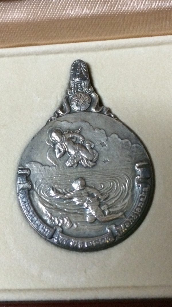 เหรียญพระมหาชนกเนื้อเงินพิมพ์ใหญ่พร้อมกล่องและหนังสือเล่มใหญ่ปกแข็งสีแดงสวยงาม เหรียญที่ 1
