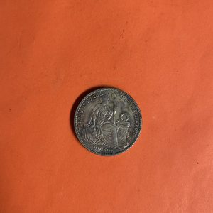 เหรียญเก่าเนื้อเงินประเทศ PERU สมัย FIRME Y FELIZ POR LA UNION ปี1924 มูลค่า UN SOL ตรงกับสมัย ร.6 ( พ.ศ.2467 )