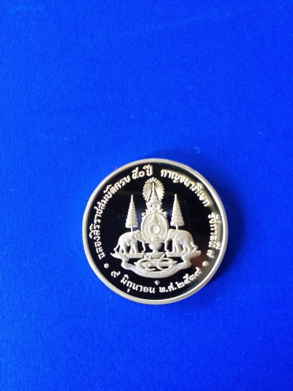 เหรียญฉลองสิริราชสมบัติครบ 50 ปี กาญจนาภิเษก 9 มิถุนายน 2539 เนื้อเงินแบบธรรมดาครบชุด 3 เหรียญ