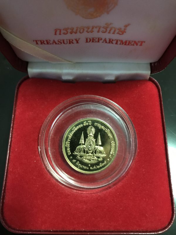 เหรียญพระราชพิธีกาญจนาภิเษก พระบาทสมเด็จพระพระปรมินทรมหาภูมิพลอดุลยเดช ปี 2539 เนื้อทองคำ หนัก 1 บาท กล่องกษาปณ์