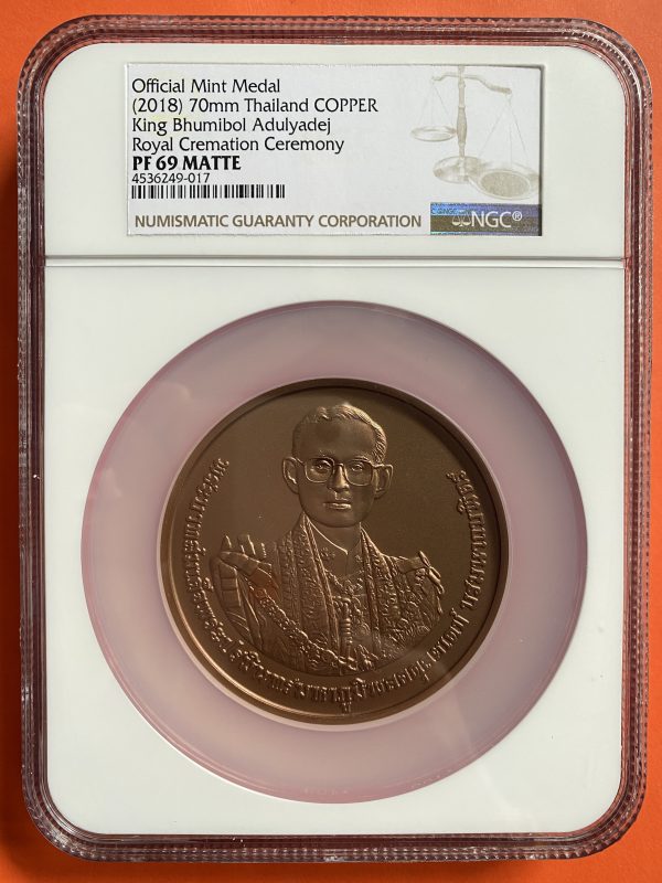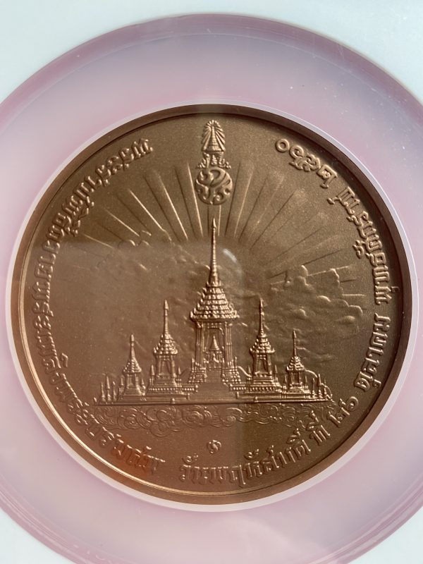 เหรียญพระราชพิธีถวายพระเพลิงพระบรมศพ ร.9 เนื้อทองแดง เมื่อวันพฤหัสบดี ที่ 26 ตุลาคม พ.ศ. 2560 ออกเกรดได้ PF 69 MATTE