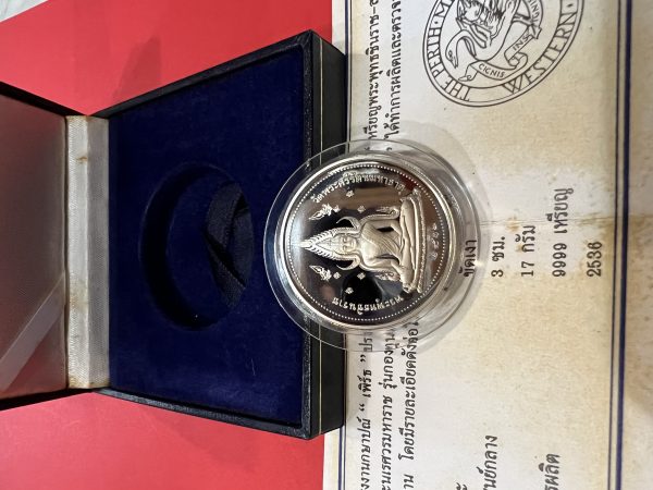 เหรียญสมเด็จพระนเรศวรมหาราชหลังพระพุทธชินราช ปี 2536 เนื้อเงินขัดเงา จากโรงกษาปณ์ ” เพิร์ธ “ออสเตรเลีย สวยเดิมพร้อมกล่อง