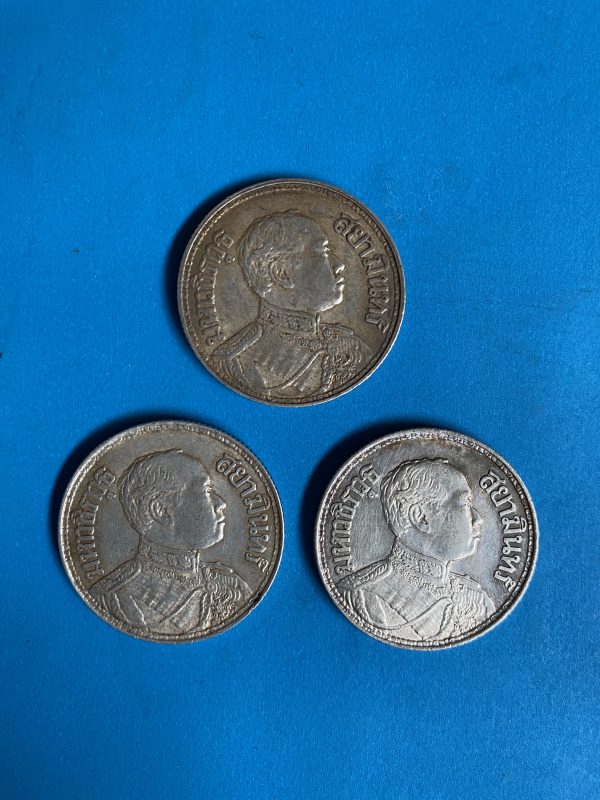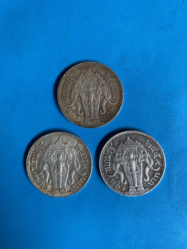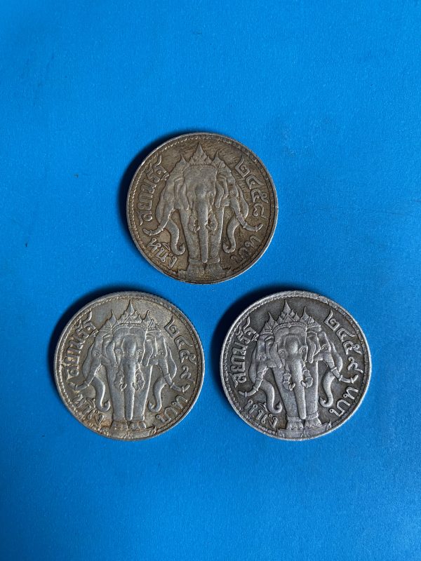 เหรียญหนึ่งบาทช้างสามเศียรเนื้อเงินสมัย ร.6 ปี พ.ศ.2458(1เหรียญ) และ2459(2เหรียญ) จำนวน 2 เหรียญสวยงามคมชัดมากๆ
