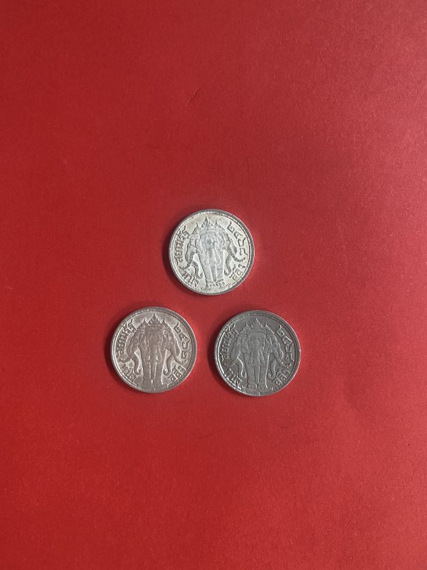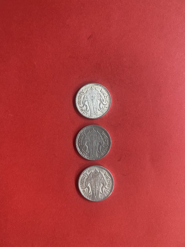 เหรียญหนึ่งสลึงช้างสามเศียรเนื้อเงินสมัย ร.6 ปี พ.ศ.2462 (1เหรียญ) และ2468 (2เหรียญ) จำนวน 3 เหรียญสวยงามคมชัดเดิม