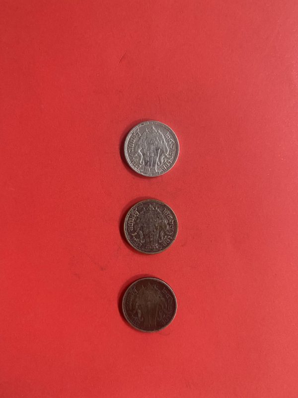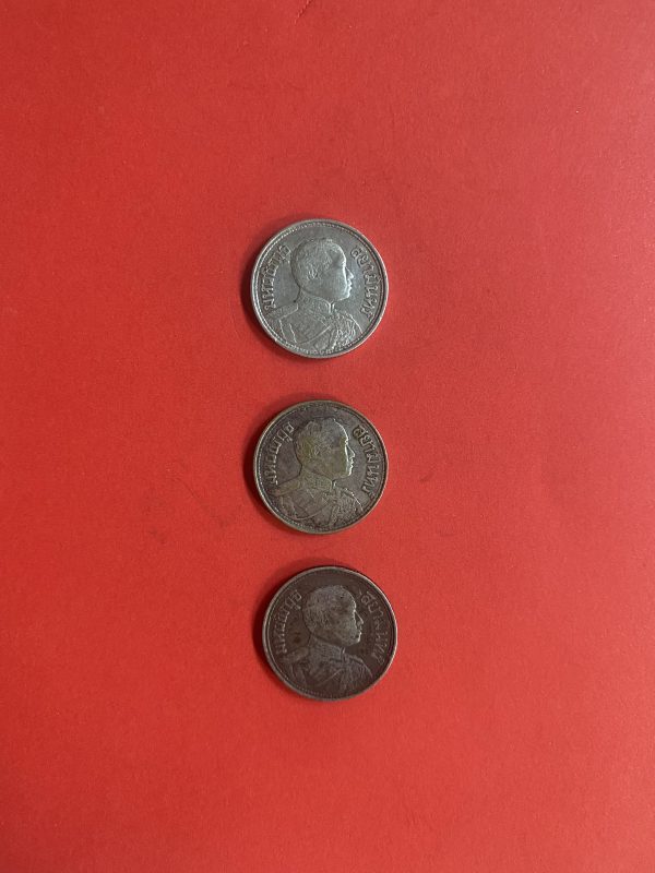 เหรียญหนึ่งสลึงช้างสามเศียรเนื้อเงินสมัย ร.6 ปี พ.ศ.2462 (2เหรียญ) และ2467 (1เหรียญ) จำนวน 3 เหรียญสวยงามคมชัดเดิม