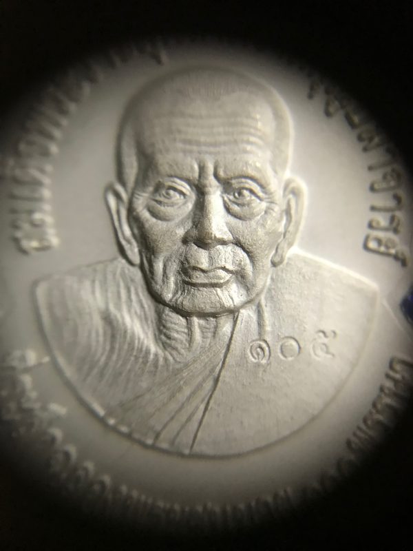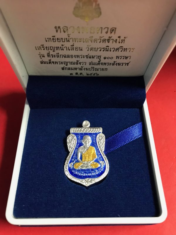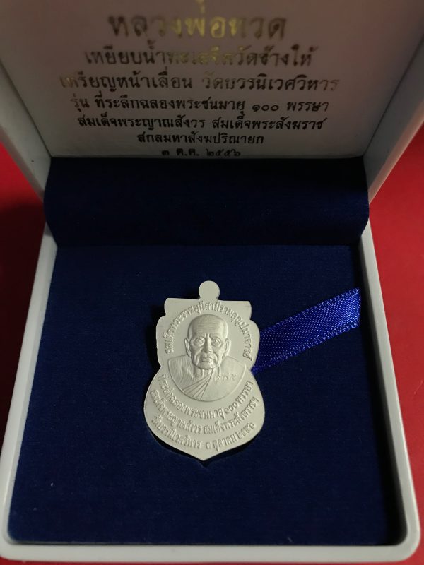 เหรียญหลวงปู่ทวด วัดช้างให้ หน้าเลื่อนวัดบวรนิเวศวิหาร รุ่นที่ระลึกฉลองพระชนมายุ 100 พรรษา 3 ต.ค.56 เนื้อเงิน ตอกโค๊ต 105