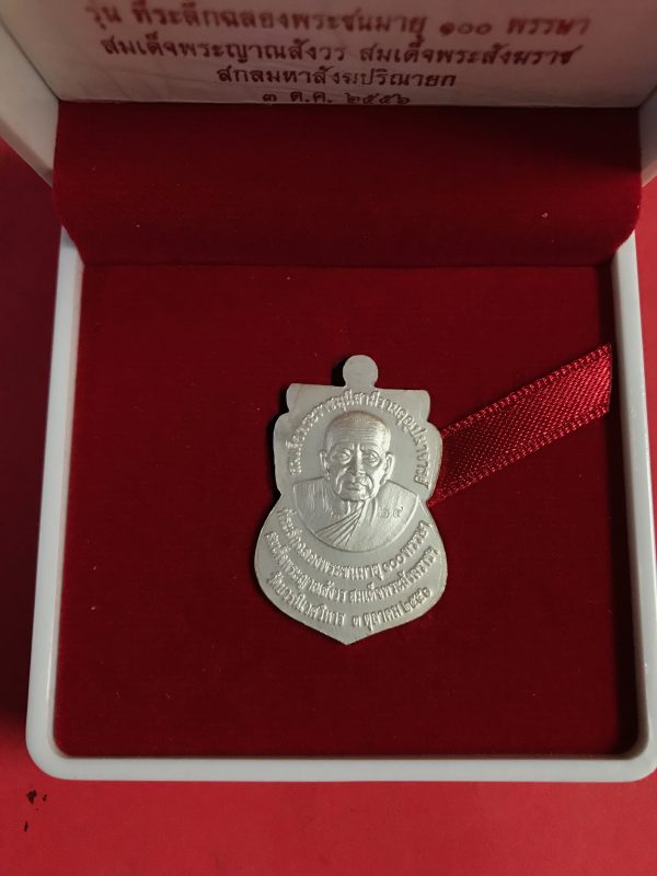 เหรียญหลวงปู่ทวด วัดช้างให้ หน้าเลื่อนวัดบวรนิเวศวิหาร รุ่นที่ระลึกฉลองพระชนมายุ 100 พรรษา 3 ต.ค.56 เนื้อเงิน ตอกโค๊ต 24