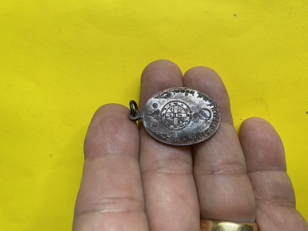 เหรียญหลวงพ่อคูณรุ่นเจริญพรบน ปี 36 ด้านหลัง เมตตรามหานิยม เลี่ยมเงินเก่ายกซุ้ม
