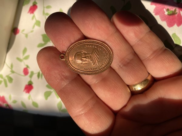 เหรียญหลวงพ่อพระครูวิบูล วชิรธรรมเนื้อทองแดงผิวไฟ หลังยันต์ มีลงจารย์ชัดเจน อยู่2ตำแหน่งซ้ายขวาข้างองค์ท่านพระครู