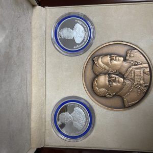 รวม 3 เหรียญบรรจุอยู่ในกล่องกำมะหยี่อย่างดี (ทองแดง7ซม.เนื้อเงิน 3.5ซม.)