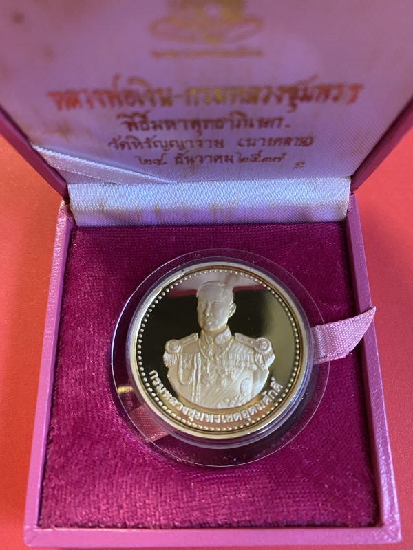 เหรียญหลวงพ่อเงินบางคลาน หลังกรมหลวงชุมพรฯ เนื้อเงินบริสุทธิ์ขัดเงาออกวันที่ 28 ธันวาคม ปี 2537 กล่องกำมะหยี่สีชมพูเดิม