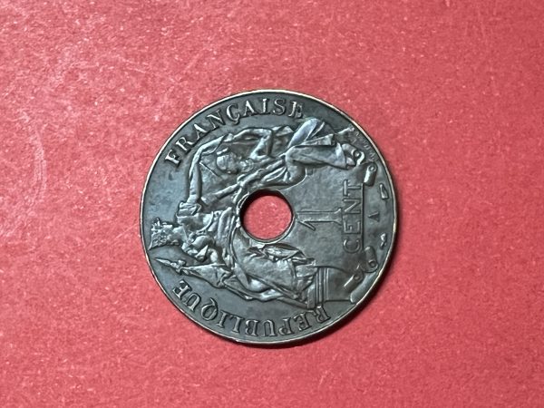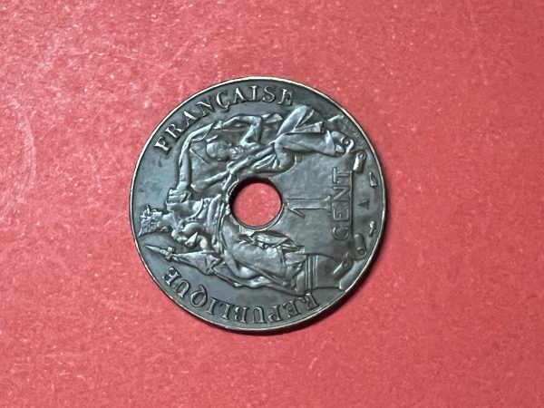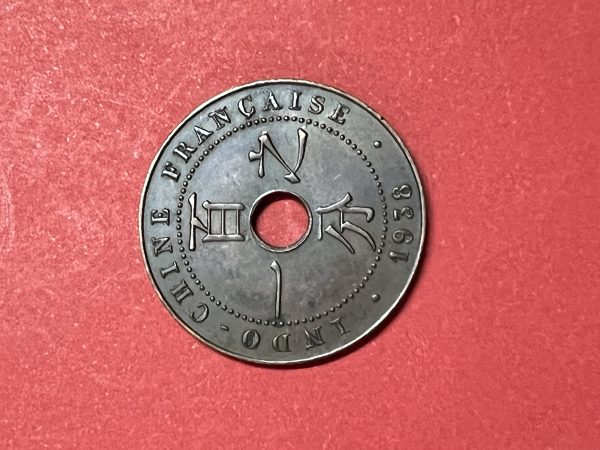 เหรียญอินโดจีนประเทศฝรั่งเศส เนื้อทองแดง REPUBLIQUE FRANCAISE ค.ศ.1938 1 Centime สวยคมชัด