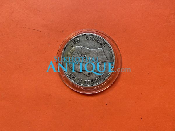 เหรียญเก่าเนื้อเงินประเทศเบลเยี่ยมสมัยพระเจ้า LEOPOLD II ROI ปี ค.ศ.1873 มูลค่า 5 France ตรงสมัย ร.5 พ.ศ.2416