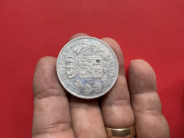 เหรียญเก่าเนื้อเงินประเทศอิตาลี สมัยปกครองโดย VITTORIO EMANUELE II ปี ค.ศ.1877 มูลค่า 5 Lire ตรงกับประไทย สมัย ร.5