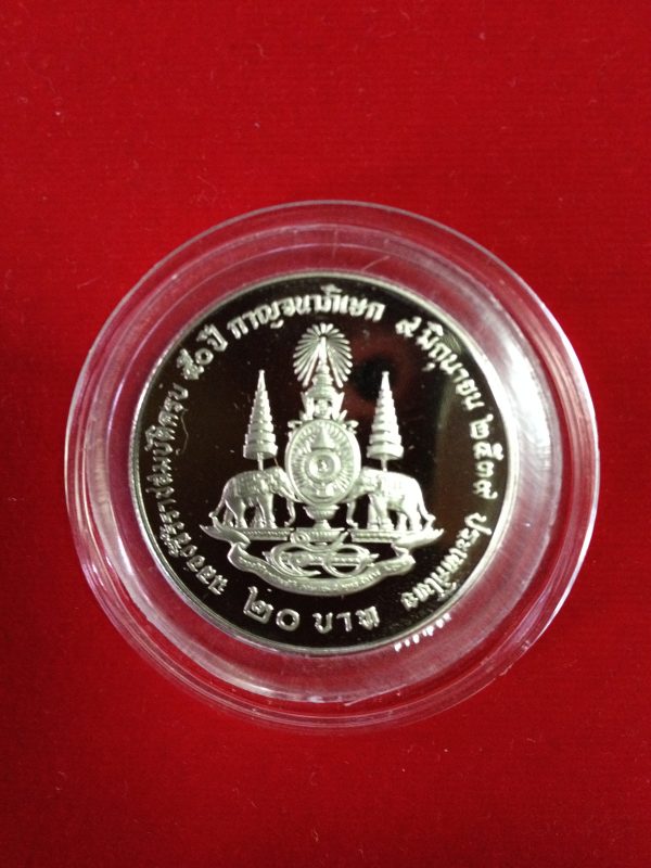 เหรียญเงินขัดเงาฉลองสิริราชสมบัติ 50 ปี กาญจนาภิเษก ๙ มิ.ย. ๒๕๓๙ หน้า 20 บาท