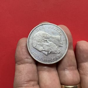 เหรียญเก่าเนื้อเงินประเทศ BELGIUM สมัย LEOPOLD II ROI ; DES BELGES ปี 1867 ตรงกับสมัย ร.5 ปี พ.ศ.2410