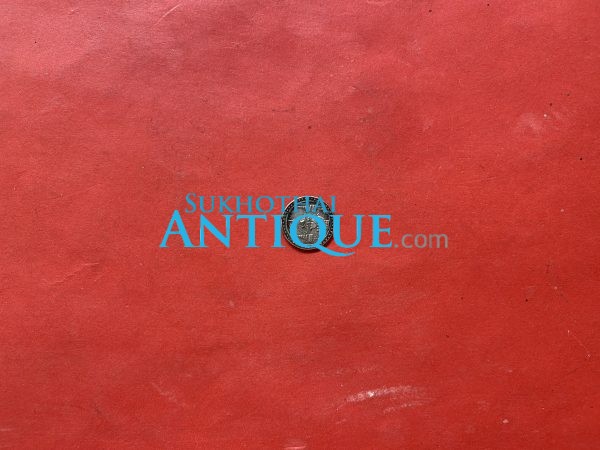 เม็ดกระดุมเนื้อเงินโบราณ มี ตราช้างอยู่ในกรงจักรลงยาเก่าสีนำ้เงินสวยงามโดยรอบ 4 เม็ด