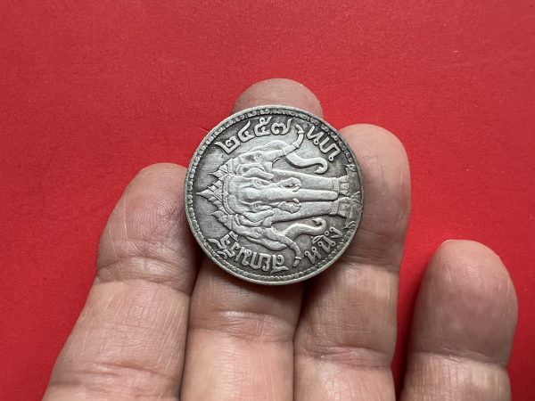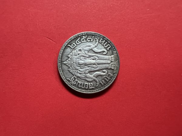 เหรียญเนื้อเงินหนึ่งบาท ตราพระบรมรูปร.6 – ตราไอราพรต พ.ศ.2457 สวยงามคมชัดเดิมๆ ทั้งเครื่องราช และขนตาของพระองค์