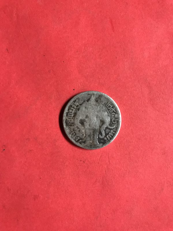เหรียญช้างสามเศียรหนึ่งสลึง ร.6 เนื้อเงิน ปี 2467 หูตาคมชัดทั้งหัวและก้อยกะไหล่เงินเดิม