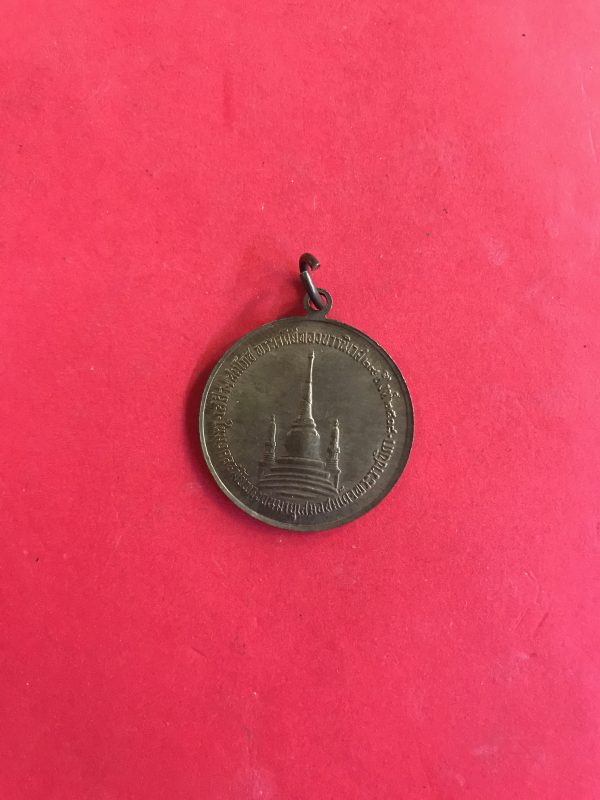 เหรียญในหลวงทรงผนวชเนื้อทองฝาบาตร ปี 2508 บล๊อกเจดีย์หัก