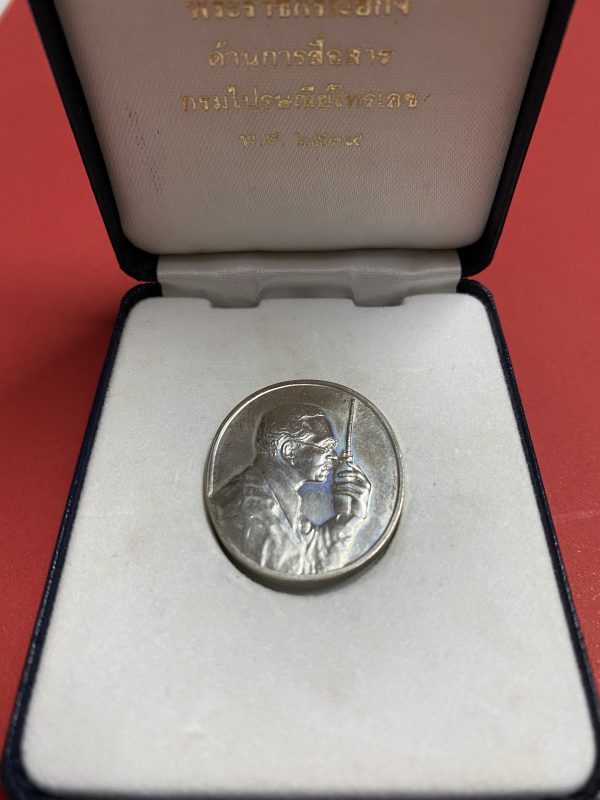 เหรียญในหลวงทรงวิทยุ หรือเหรียญทรงวอเนื้อเงินพร้อมกล่องเดิม ของกรมไปรษณีย์โทรเลขผลิตปี 2539 อยู่ในกล่องเดิม คลาสสิคสวยงามคมชัดหายากมากๆ